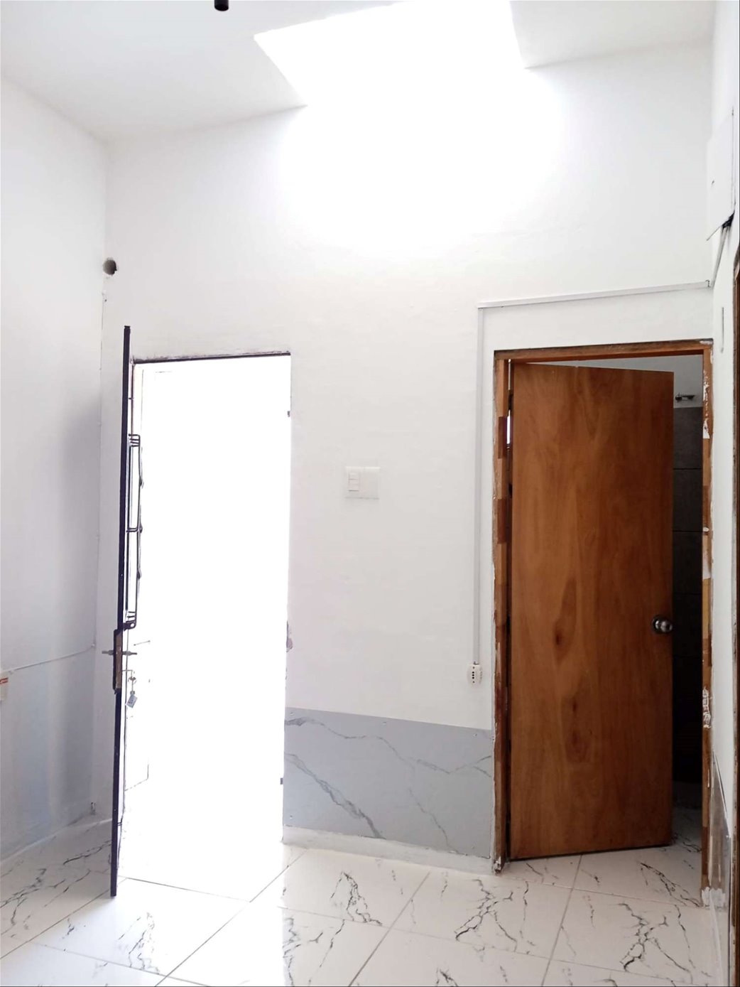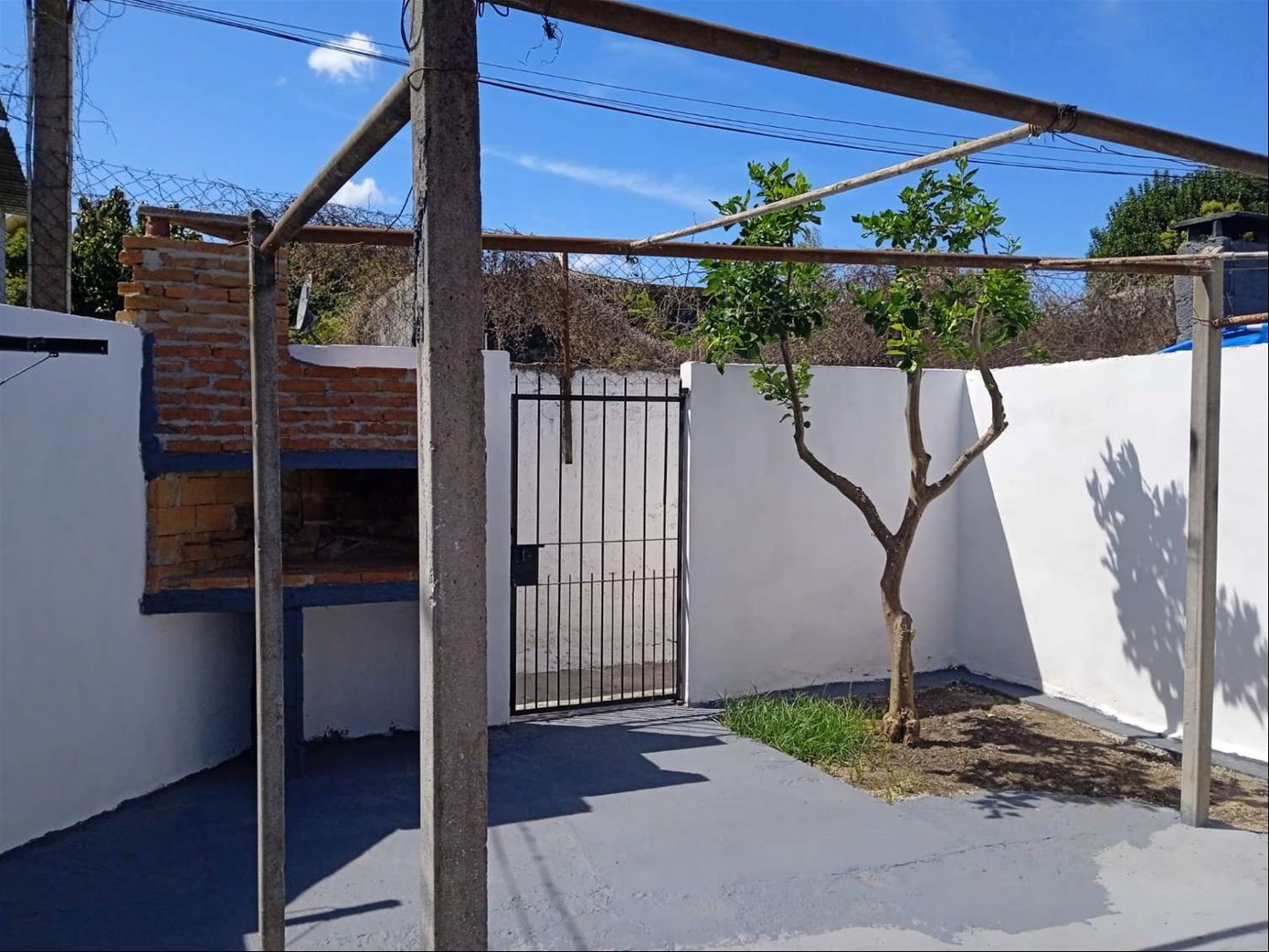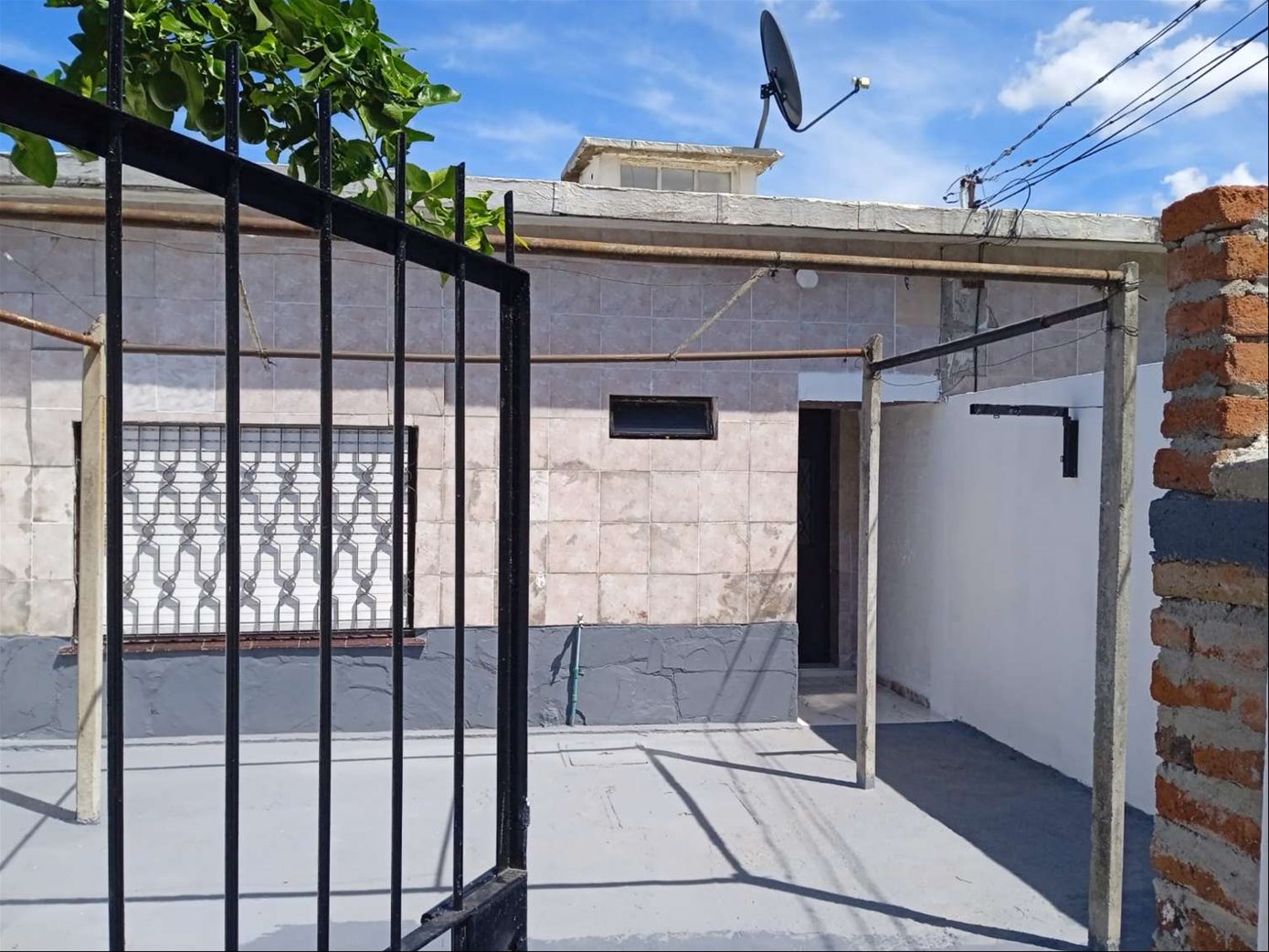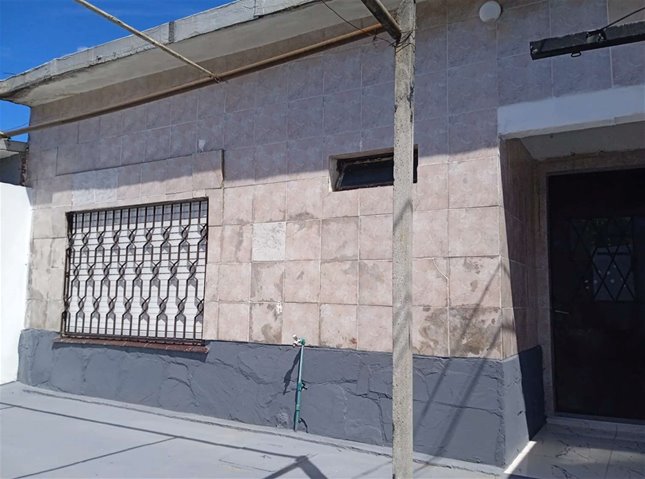 Techo de plancha, aberturas con rejas y cortina de enrollar.